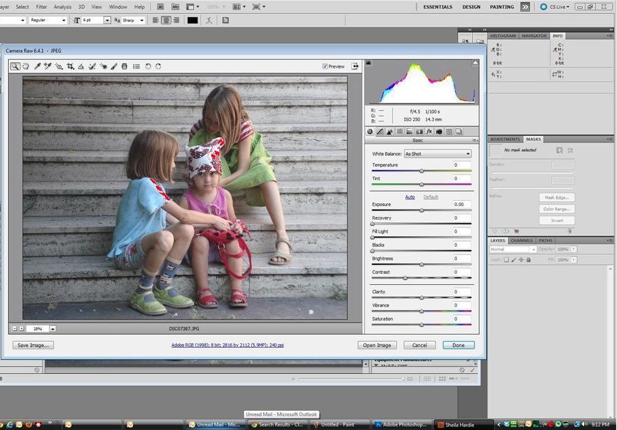 The first thing I did was to bring it into Camera Raw. This is the interface with Photoshop that allows you to make some basic tweaks.